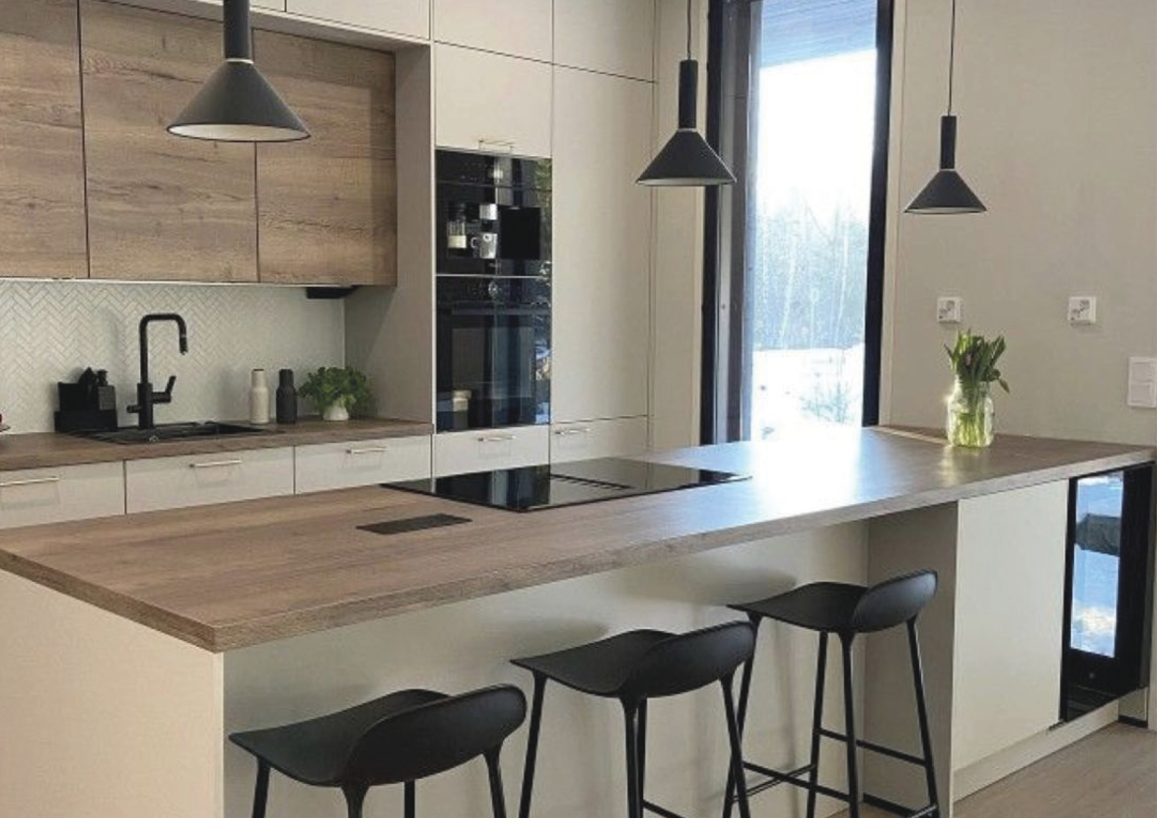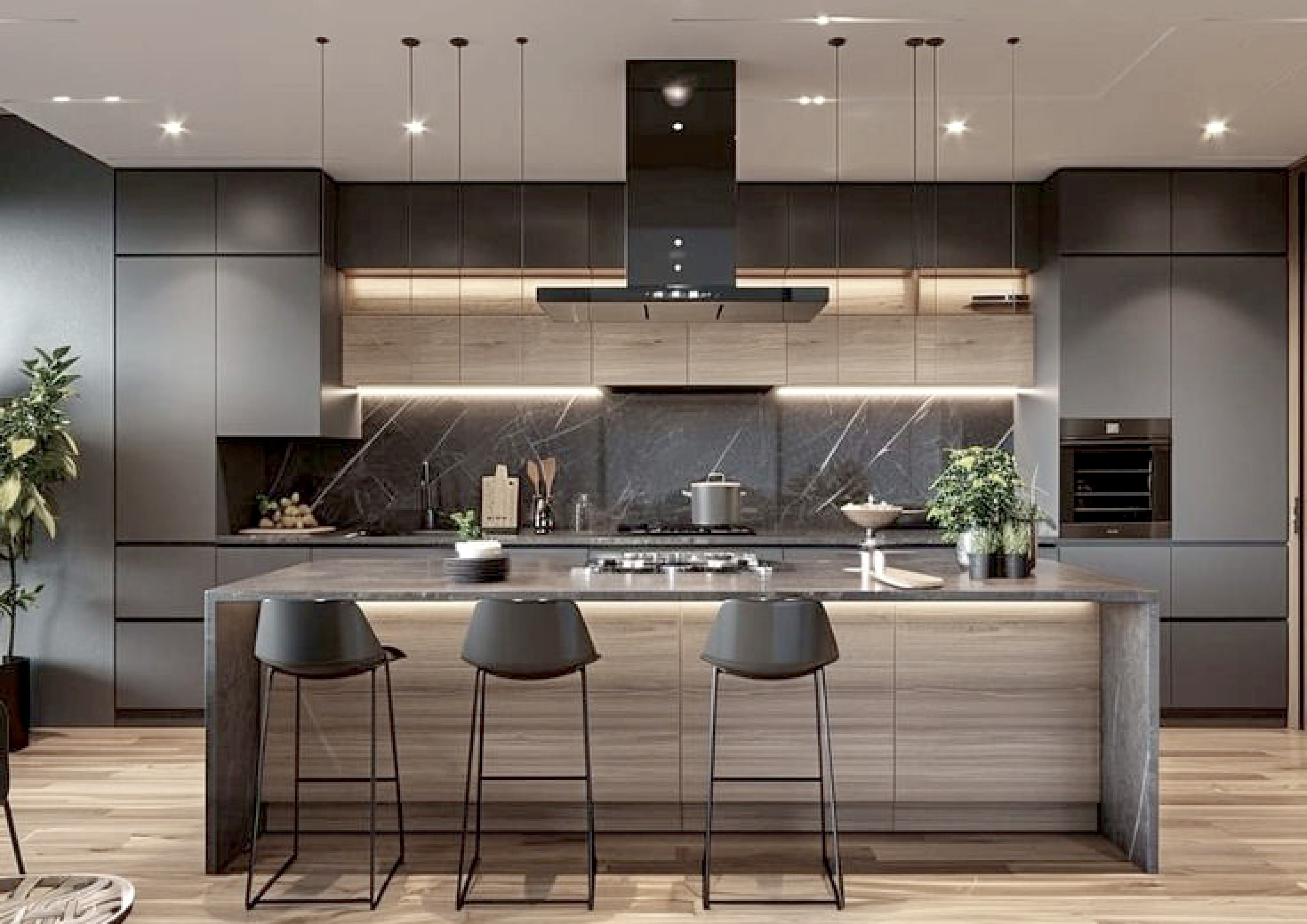Kuchyně: místnost nebo prostor v bytě určená k přípravě a úpravě jídla, vybavená dle velikosti kuchyně kuchyňskou linkou s dřezem, troubu, sporákem, ledničkou atd. Tvar kuchyňské linky může mít podobu písmen U, L, I a další.