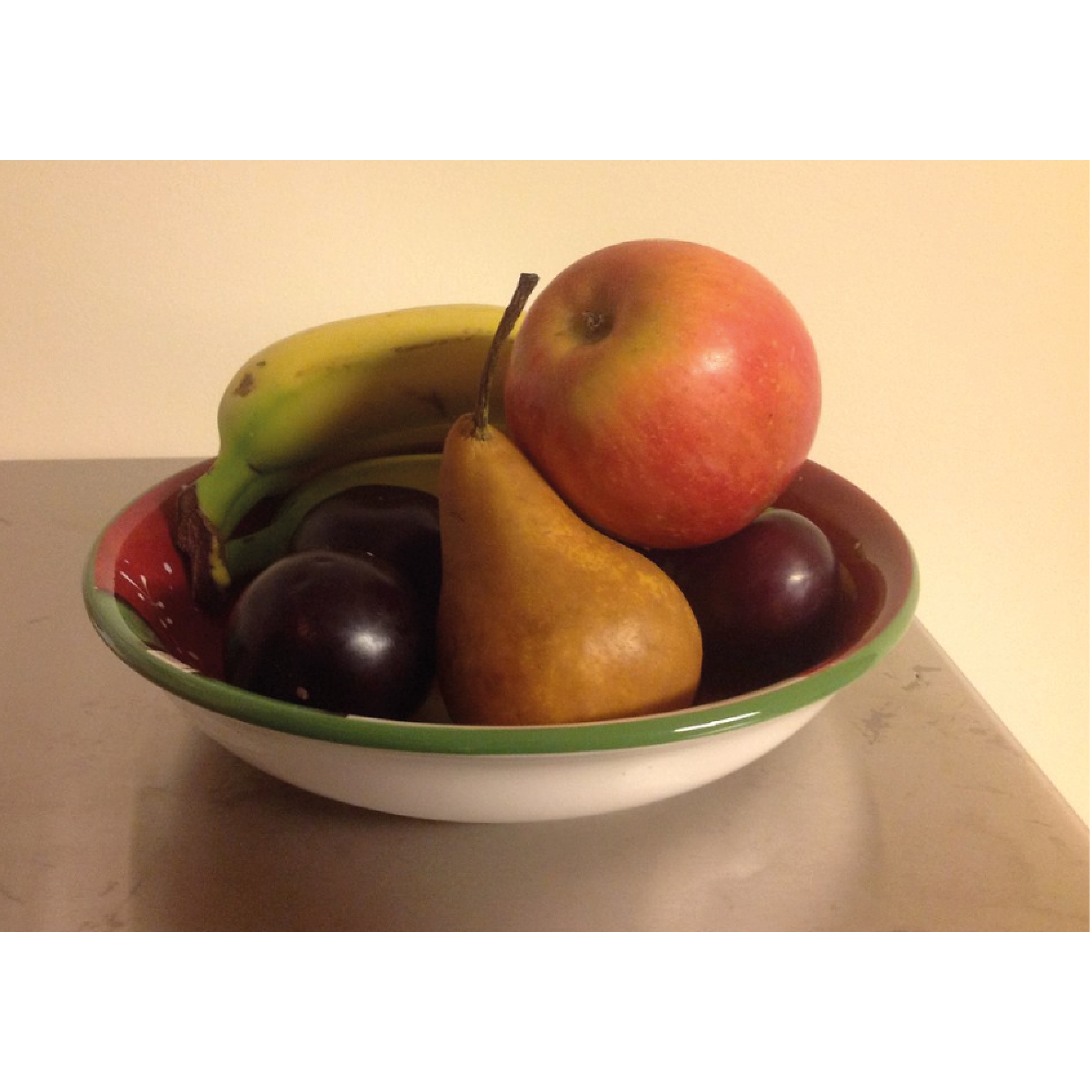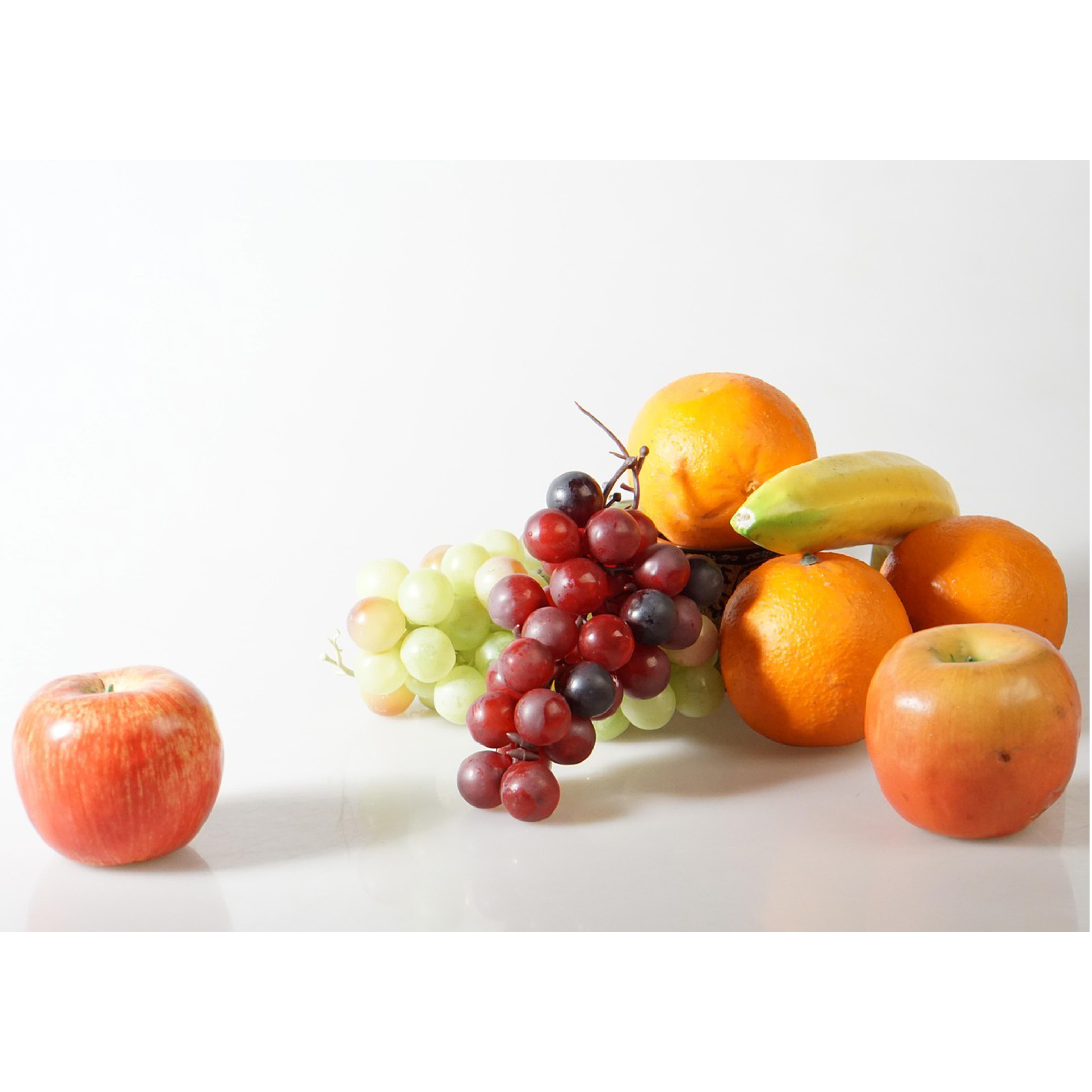 b) Miska (nádoba, ve které je ovoce ukotveno) nebo volně stojící kompozice (s důrazem na kompaktnost - shluk ovoce na jednom místě / nebo jednotlivé kousky ovoce volně položené - volte ale menší počet kusů, kompozice by se neměla „rozlézat“ příliš do stran, měl by jít identifikovat střed kompozice s větším obsahem)