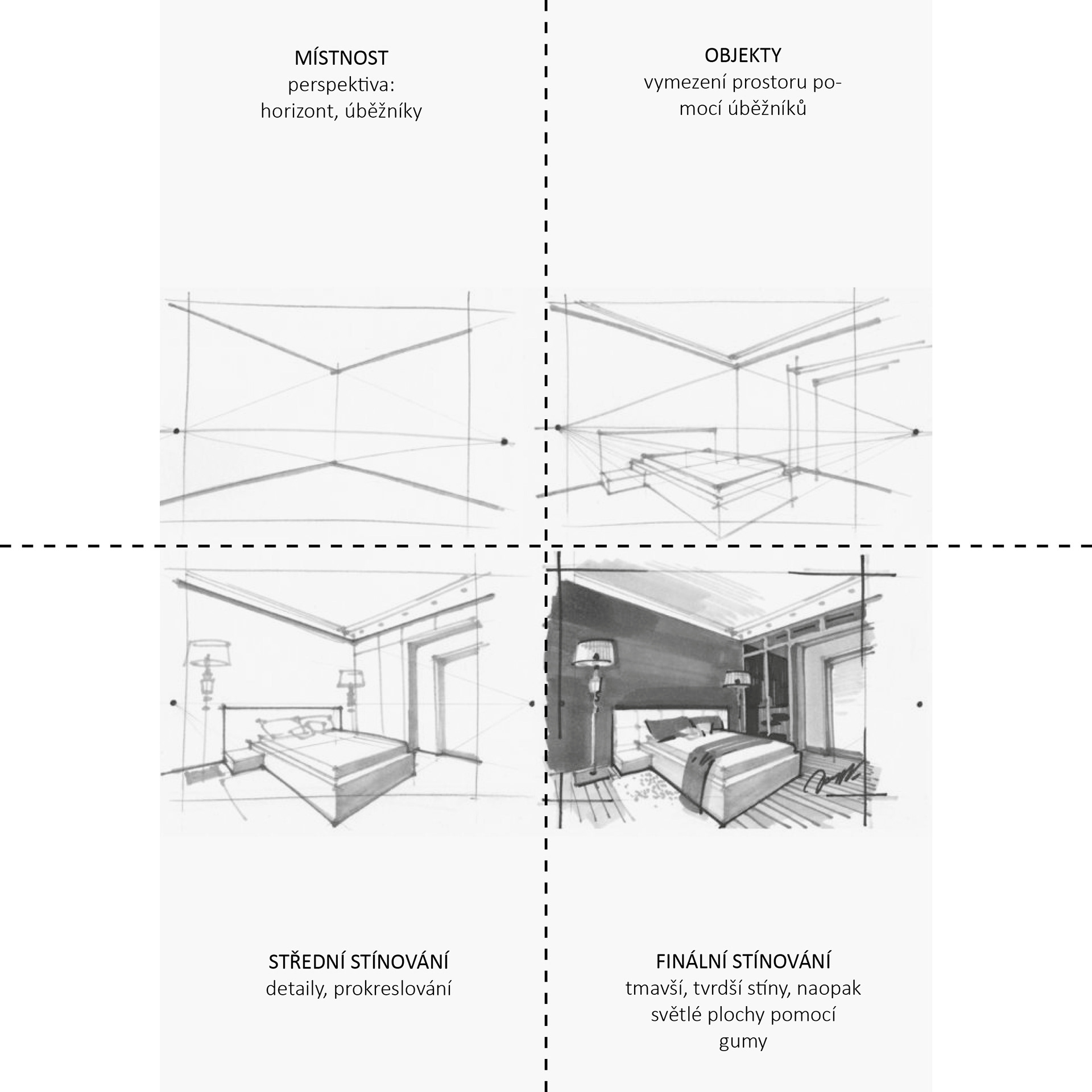 1 x kresba interiéru (doporučeno ve dvouúběžníkové perspektivě)