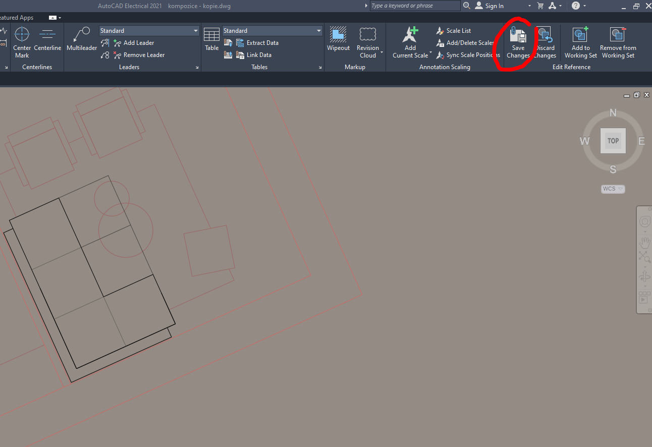 - možnost duruhá - lze přímo v modelovém prostoru (potlačí úpravy na pozadí a přenese do editace bloku přímo v modelu), dobré pro rychlé úpravy. Ukončení vpravo nahoře - uložit (nebo zahodit změny, pokud blok nechcete upravit)
