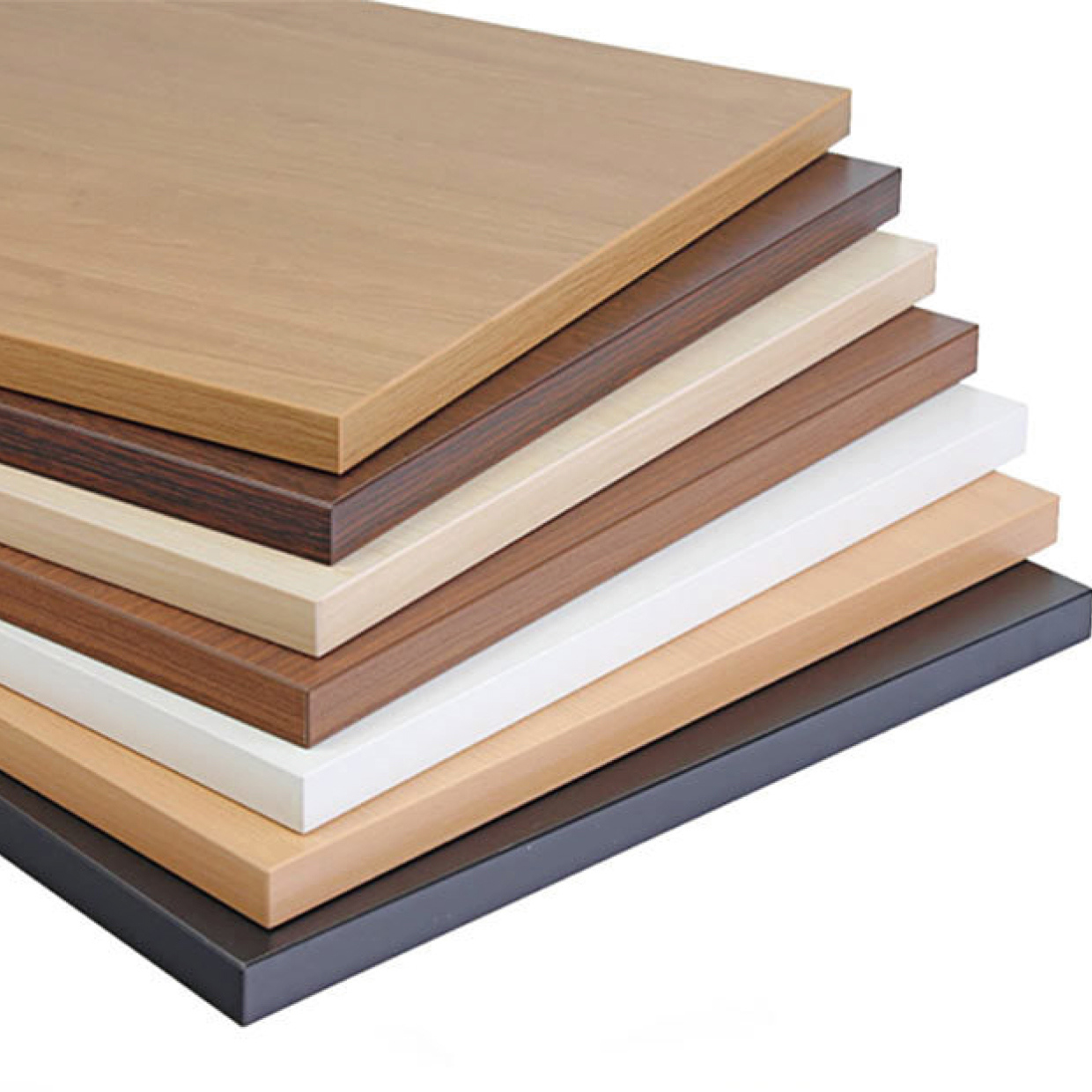 Používá se na pracovní desky, jídelní stoly i exponované plochy ve veřejných interiérech. Z druhé strany desky musí být nalisován laminát o stejné tloušťce (tzv. protitah), aby se deska nezkroutila. Vybírat lze různé odstíny, dekory dřeva, kamene atd. z dekorovaných knih výrobců (Egger, Kronospan, Unilin, Formica, SMart atd.)