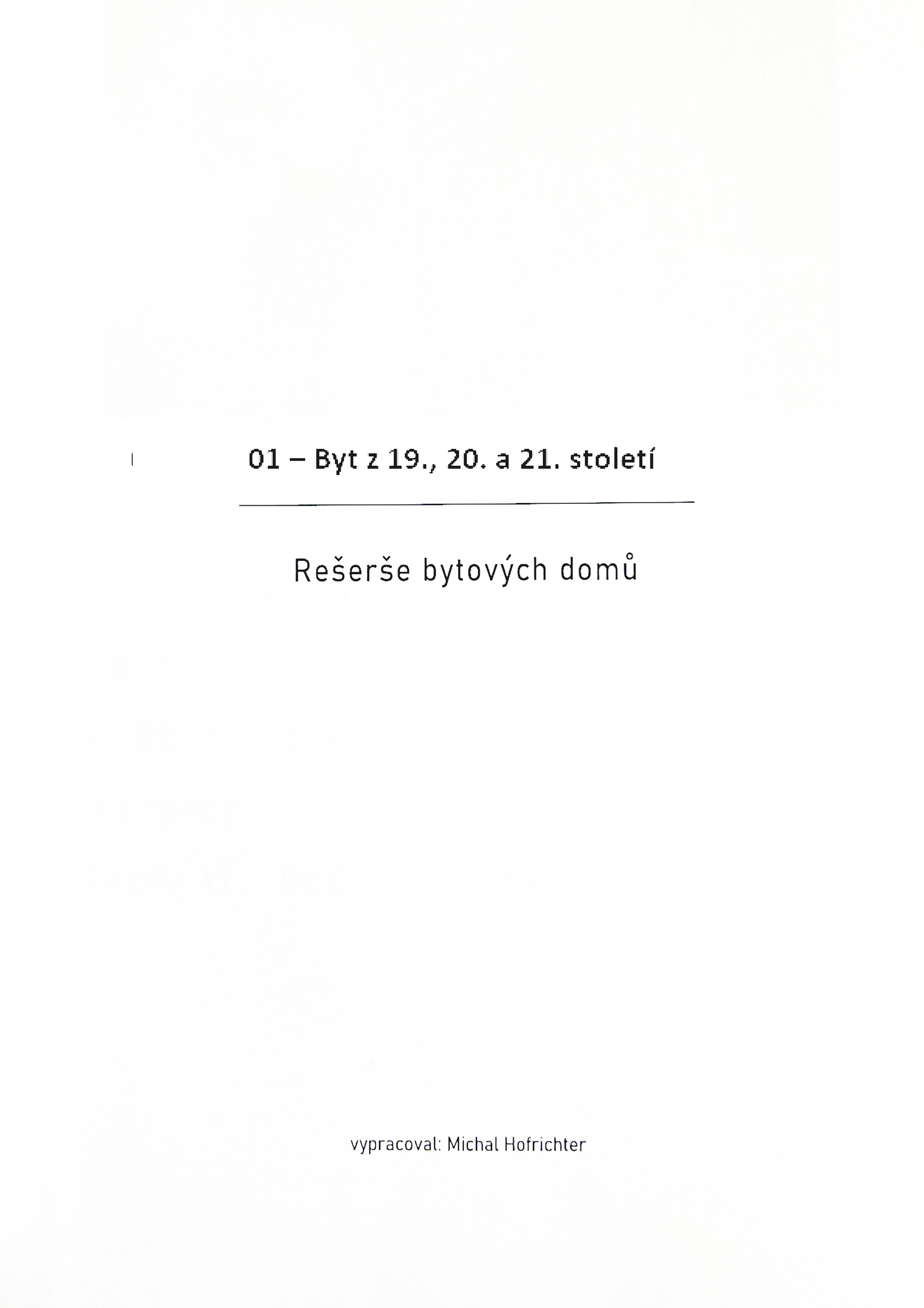 Úloha je zaměřena na zpracování rešerší bytů v bytových domech z různých časových období. Seznámení s typologií bydlení, dobovým dispozičním řešením bytu a základním rozborem.