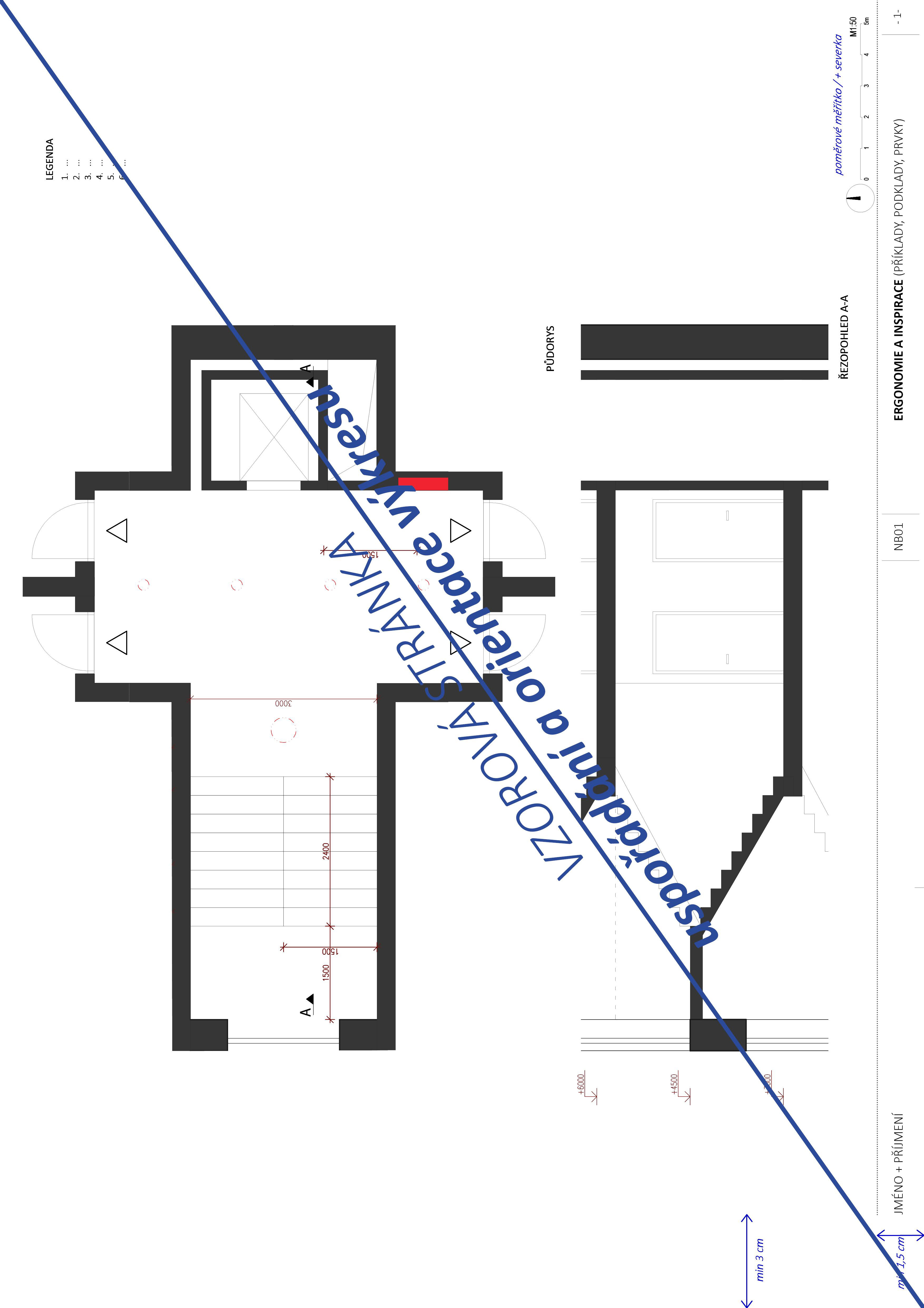 Schodiště s výtahem a halou: schodišťové sekce bytového domu s umístěním 1 výtahu (na internetu vyhledejte vhodný typový výtah) a domovního schodiště. Konstrukční výška podlaží je 3000 mm. Z prostoru bude přístup do 2-4 bytů. Okenní otvory: Součástí návrhu bude orientace ke světovým stranám a okno/okna. Technické vybavení: jako instalační prostup pro vzduchotechnické vedení ze společných prostor v suterénu (cca 3 x vzt profil á 0,5 m2) a také umístění patrových elektrorozvaděčů pro 2-4 byty. Umístěte základní pozice umělého osvětlení prostor a vyznačte volbu povrchů podlah a stěn. Součástí výkresu bude i výpočet základních parametrů schodiště, volba výtahové kabiny a výtahové šachty včetně příslušných konstrukcí, schodišťové zábradlí.