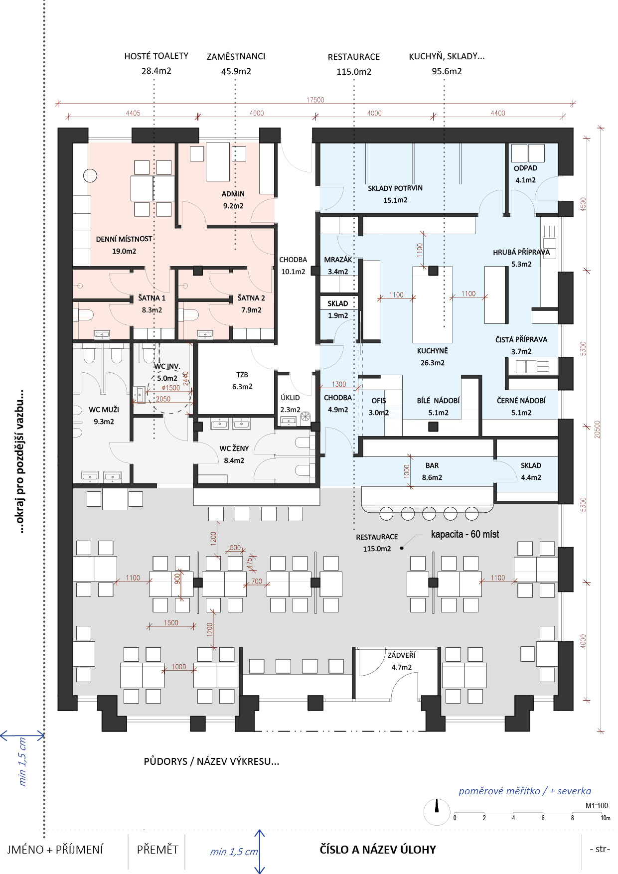 Návrh: Navrhněte dispozici restaurace včetně zázemí (cca 60 - 100 míst) / alternativa překreslení obdobné restaurace v měřítku
