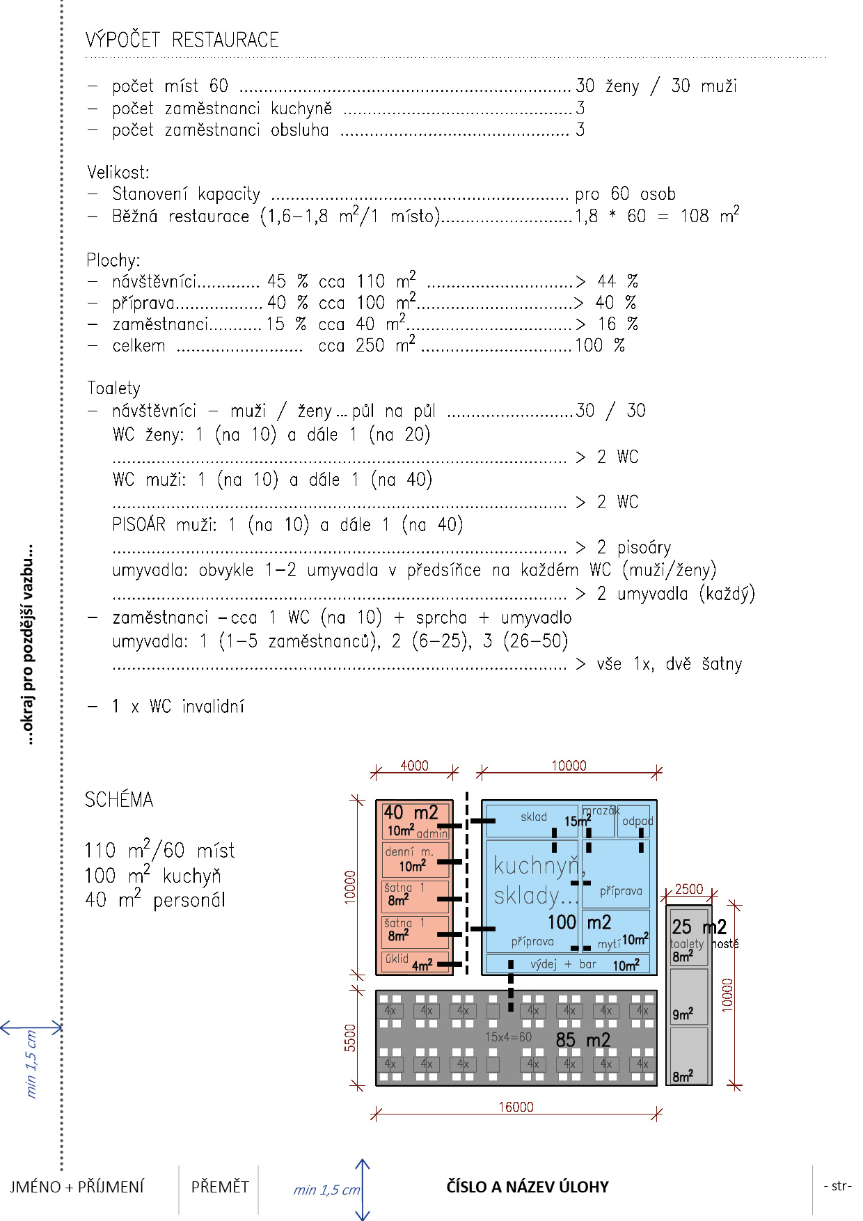 Návrh: Navrhněte dispozici restaurace včetně zázemí (cca 60 - 100 míst) / alternativa překreslení obdobné restaurace v měřítku