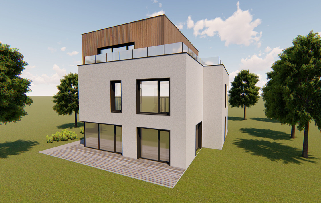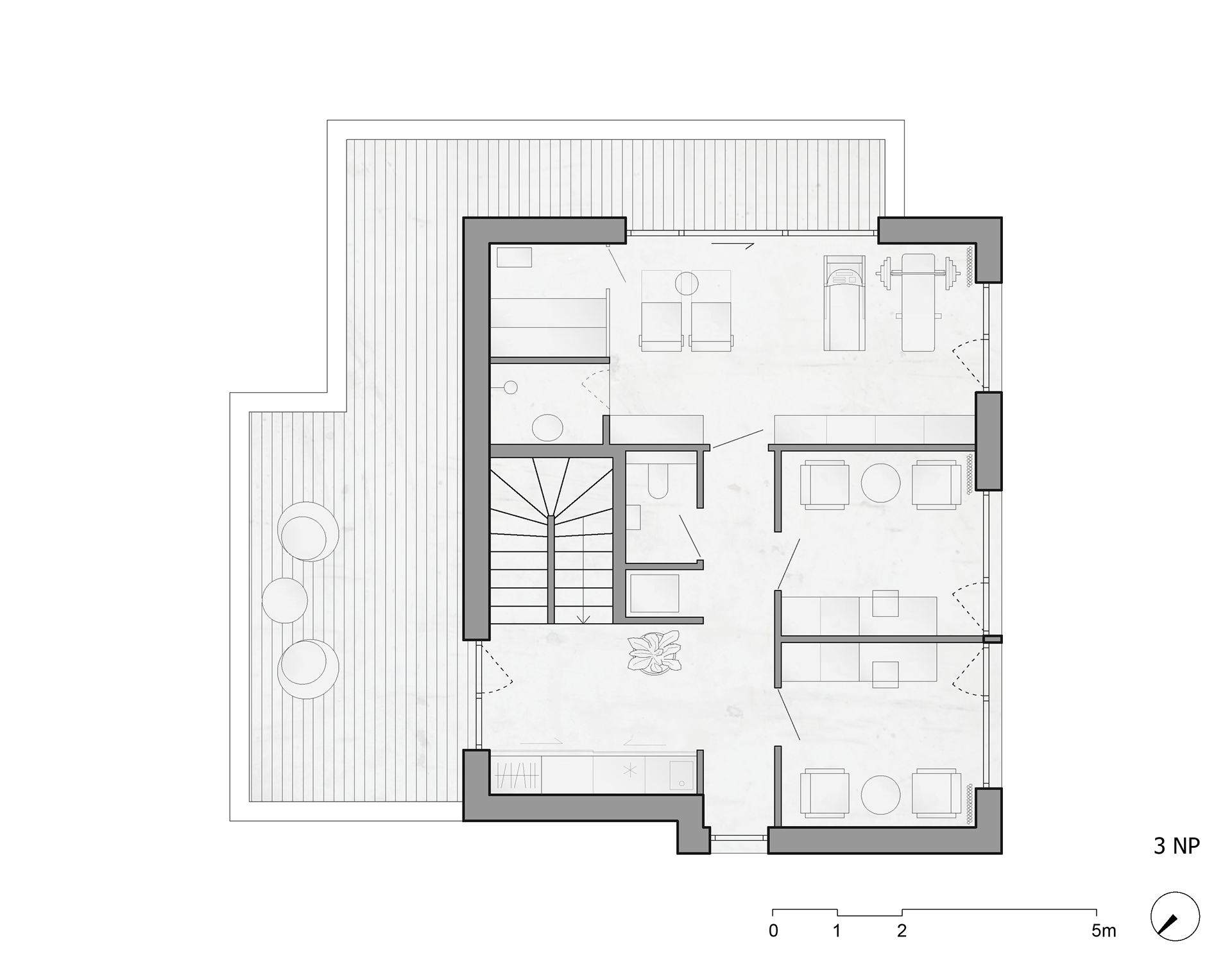 Surrounded by nature in a secluded location with a glass gallery, the villa is designed in an austere style as a home for an artist who needs a clear head for inspiration for his work.