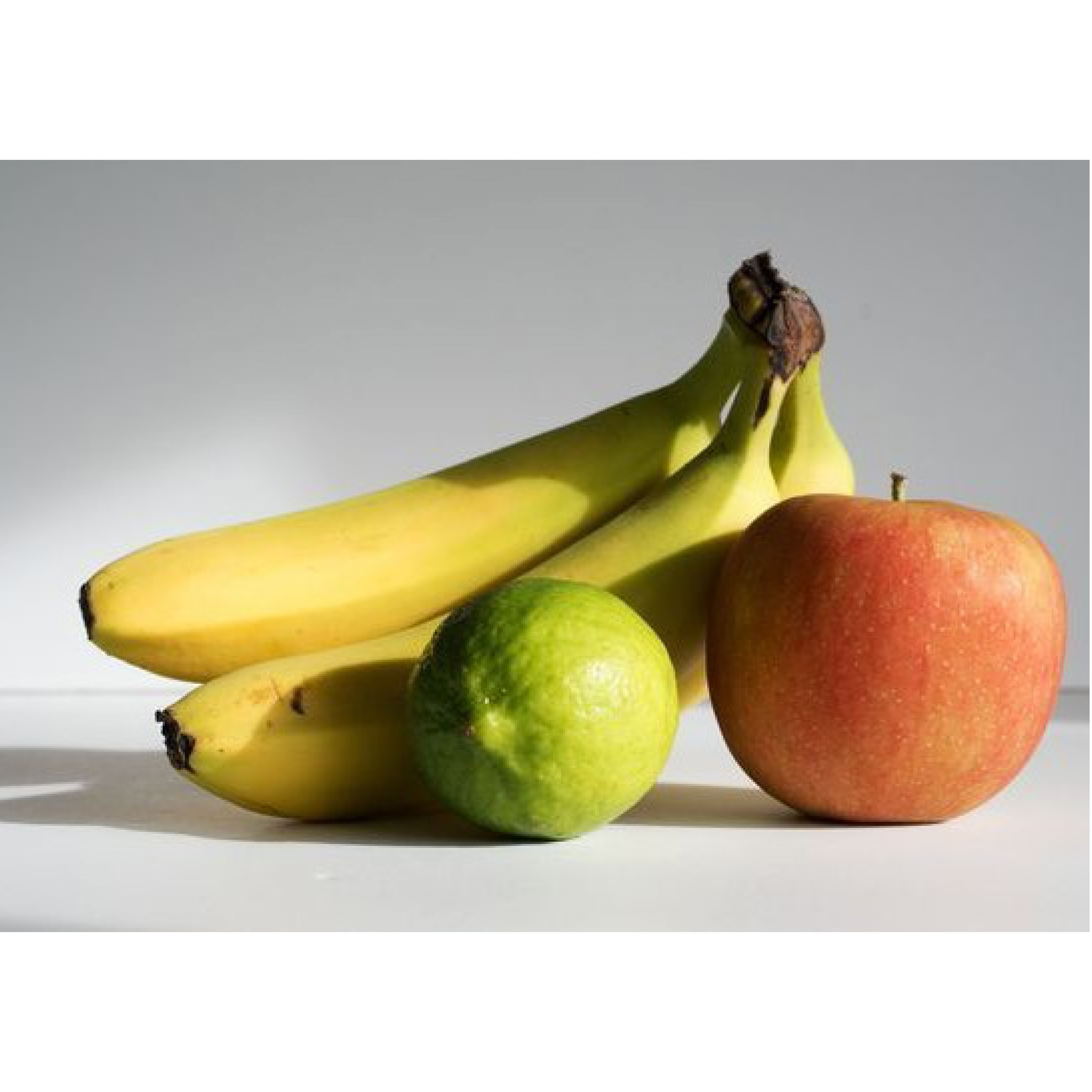 a) Prvky kompozice - zaměřte se na ovoce, detaily (napomůžete tomu sestavou kompozice), čím více prvků, které pomyslně rozbíjí tvary ovoce, tím lépe (např. stopka od papriky, stopka od jablka), sestavte s důrazem na za končení například u banánu, špička citrónu apod., celkově pomůže jednoznačně odlišit tvary ovoce a podpoří výsledný efekt identifikace kresby s ovocem